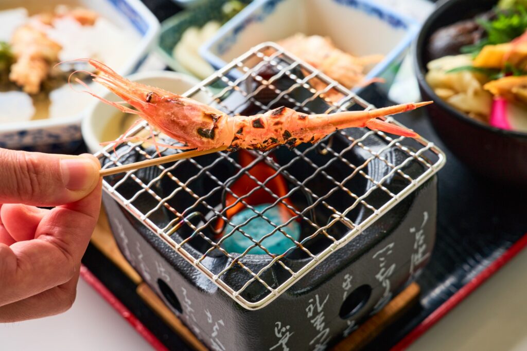 ※今回は、カニ御膳と南蛮エビ御膳の両方を紹介します。実際には、別々の体験プランとなっています。
